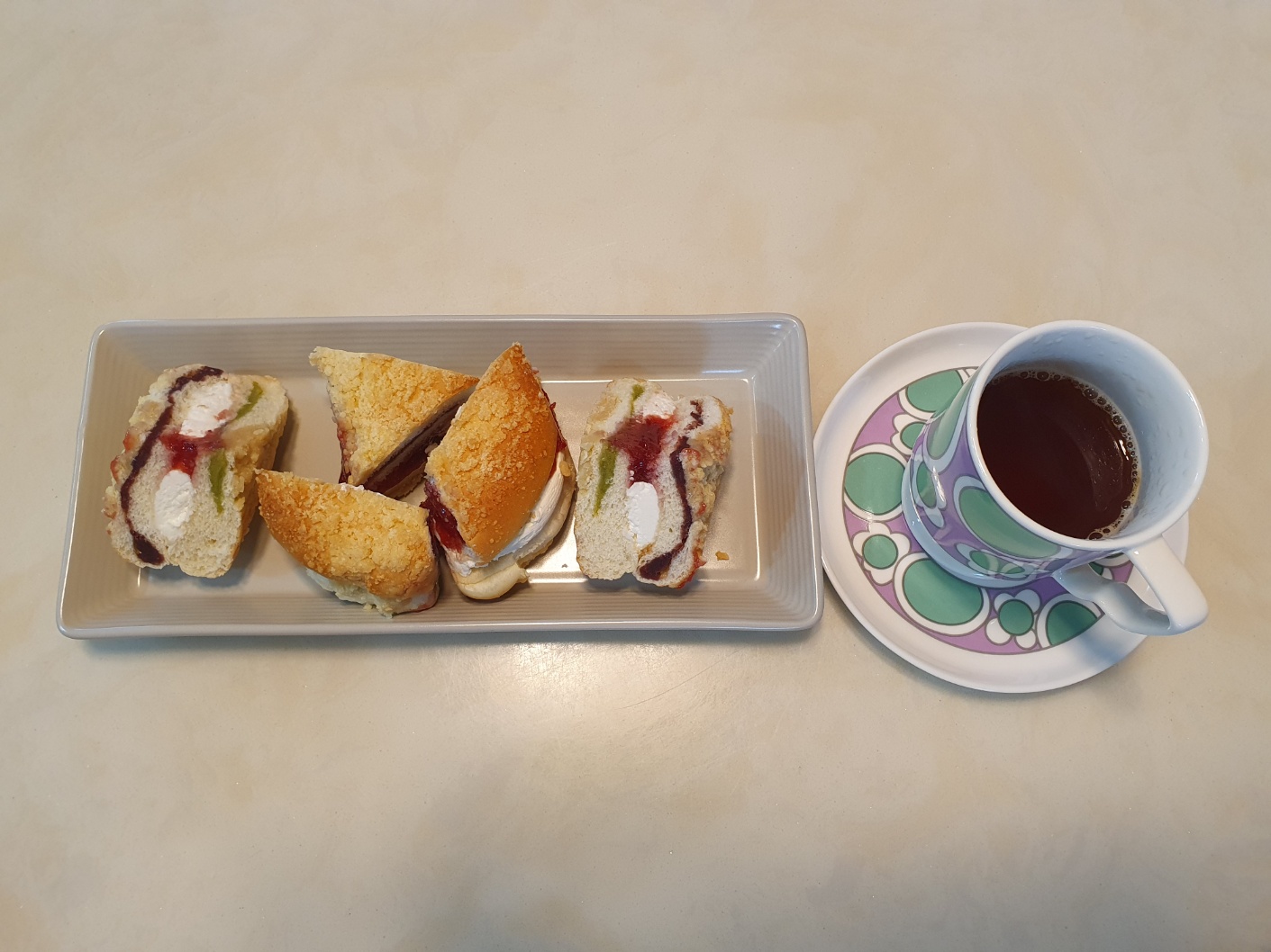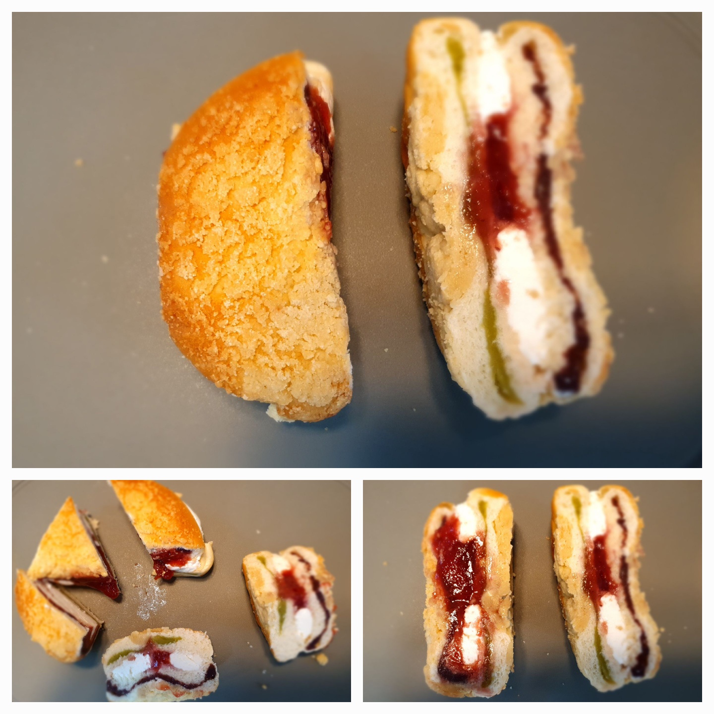소보로빵이 부드럽고 보시는거와 같이 빵 안이  딸기쨈과 버터 앙금으로 꽉차 너무 먹음직 스러웠습니다.
