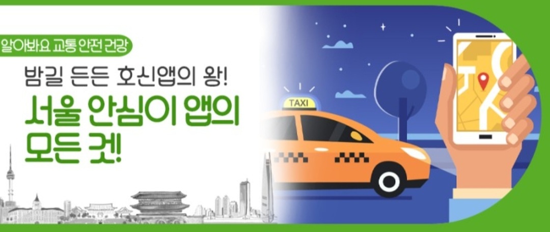 귀갓길 안전을 지켜주는 안심귀가택시 운영으로  여성, 어린 자녀, 무서움이 많은 분들은 안전이 필요한 모든 분들이 위 서비스를 이용하여 안전을 지켰으면 좋겠습니다.