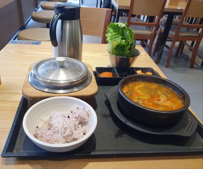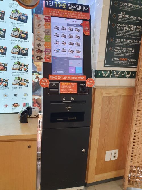 주문은 입구 쪽에 있는 키오스크를 통해서 하면 됩니다. 메뉴가 복잡하거나 많지 않아 어렵지 않게 주문 및 결제가 가능합니다. 무엇을 먹을까 잠시 고민 (쌈채소가 있으니 오징어 볶음 vs 햇살은 따스한데 바람이 불어 따뜻한 국물) 하다 따뜻한 국물이 있는 시골우거지해장국(9,500원)을 선택했습니다.