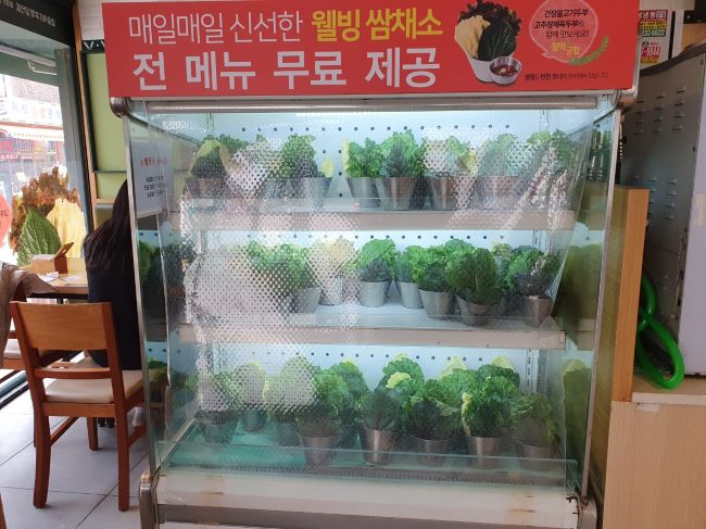 쌈채소는 냉장고에서 자유롭게 꺼내 먹을 수 있습니다. 쌈채소를 좋아하시는 분들은 부담 없이 가져다 드실 수 있어요.