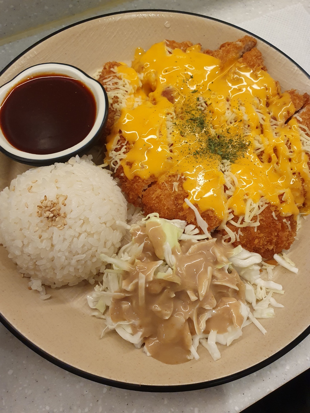 돈가스 위에 치즈가 듬뿍 입 짧은 친구가 주문했는데..... 맛있다며 한 조각 남기고 다 먹어서 놀란 맛입니다.
