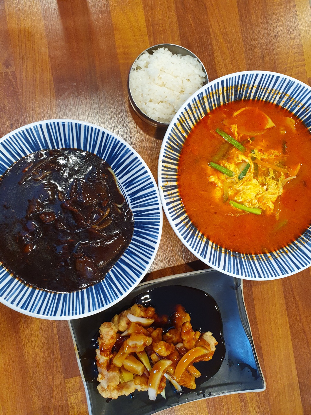 오늘의 메뉴 짜장면과 미니탕수육과 짬뽕 밥을 주문하였습니다. 새콤달콤한 소스에 바삭한 탕수육 우리가 알던 그 맛입니다. 짜장면은 어렸을 때 동네 중국집에서 먹던 맛이 생각나네요. 면이 쫄깃하니 3,900원 가성비 최고입니다. 짬뽕밥은 아주 깔끔한 맛입니다. 매콤함도 적당이 좋고 재료도 싱싱하니 좋았습니다.