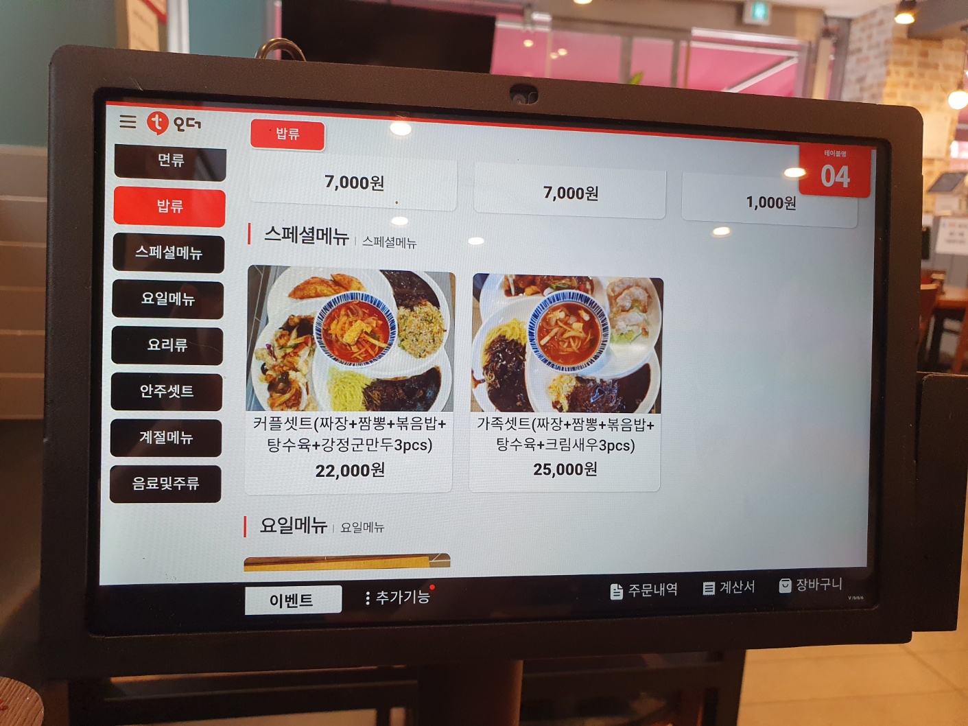 각 테이블마다 태블릿이 있어 스마트하게 주문을 하면 되는데요. 사용이 어려우신 분들은 직원분들이 직접 주문도 받으니 걱정 안 하셔도 됩니다. 자리에서 주문만 가능하고 결재는 식사 후 카운터에서 하시면 됩니다.