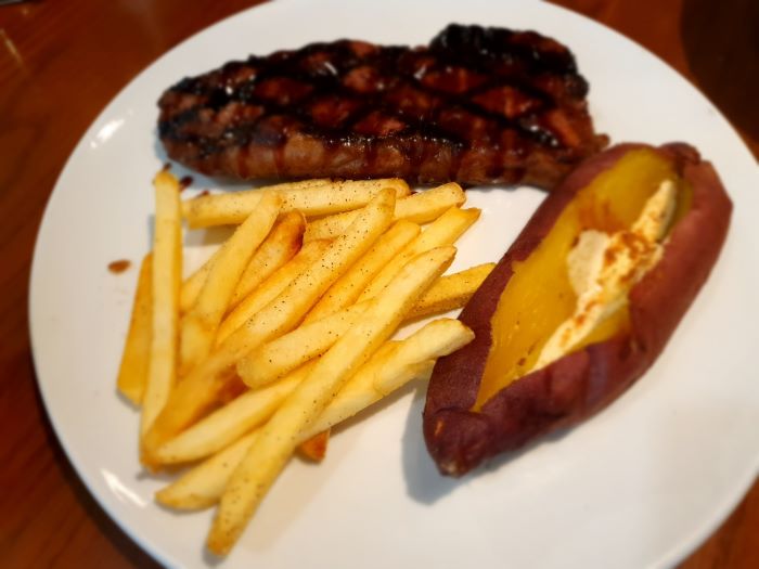 다른 스테이크는 굽기 조절이 가능한데요. 짐붐바스테이크는 굽기조절이 불가하고 미디엄 혹은 미디움 웰던으로 나옵니다.  질기지 않고 부드러우면서 초등학생 입맛을 가진 분들에게 강력 추천합니다!