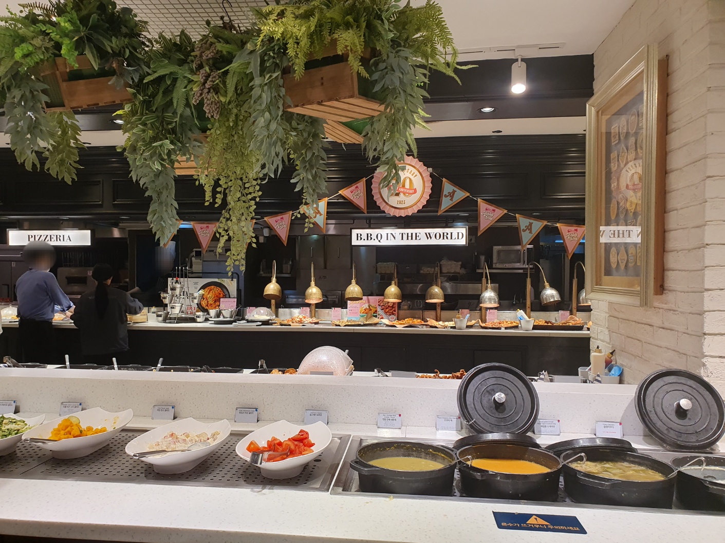 매장입구에서 키오스크도 있는데, 직원이 직접 결재를 해주더라고요. 샐러드바랑 가까운데 단체 손님 있는 좌석과 샐러드바랑 조금 멀지만 개인석 결정하라고 하길래 당연 조금 멀지만 조용한 개인석을 결정하고 받은 영수증에 적힌 번호 좌석으로 가면 됩니다. 애슐리 종로점 꽤 넓었습니다. A부터 F까지 구역이 나눠져 있었습니다.