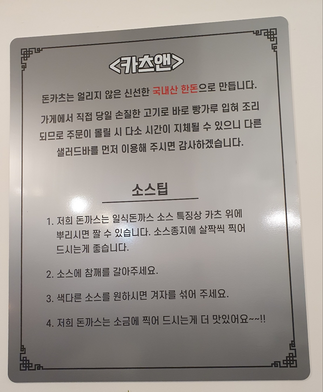 소스도 일반 돈가스소스, 매콤소스, 아주 매운 소스등이 있는데 저는 매운 걸 좋아해서 아주 매운 소스도 선택했지만, 생각보다 맵지 않았습니다.