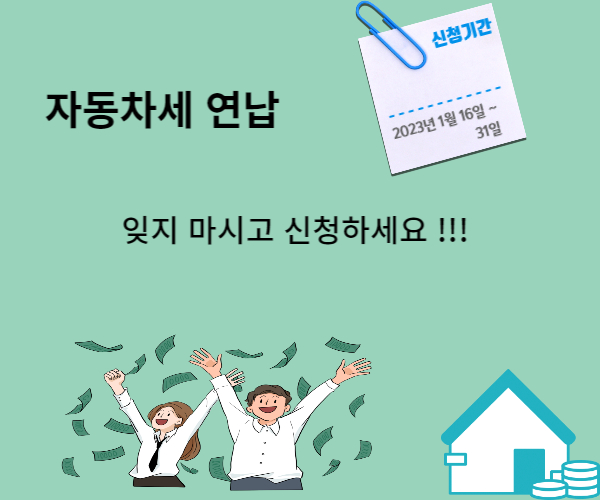 2023년 자동차세 연납신청 기간은 1월16일부터 1월 31일까지입니다.