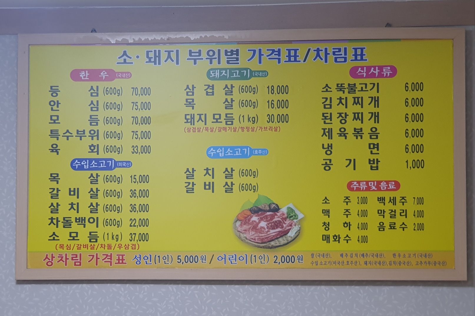 첫째 너무 깨끗해서 놀랐습니다.  고깃집인데  바닥도 상위도 기름기 없고 뽀득하니 너무 깨끗했습니다.