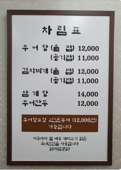 점심시간이 지난 오후에 갔는데, 테이블에는 사람들이 많이 있지는 않았지만 테이블 서너개에 포장 추어탕이 가득 진정한 맛집이네요.