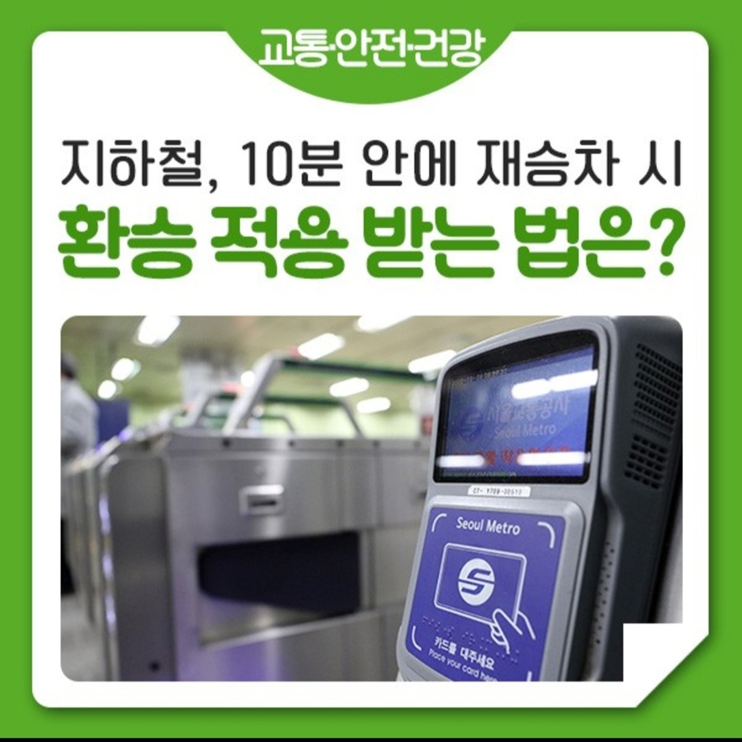 얼마 전 한의원 갈 일이 있어 지하철을 타러 가는 데 평소 습관처럼 집 가는 방향으로 교통카드를 찍는 순간 반대방향으로 가야 하는 걸 인지했습니다. 난감함과 호출벨을 눌러 역무원에게 상황설명을 하고 다시 반대방향으로 가야 하는 번거로움과 죄송한 맘이 있었는데요. 7월부터 10분 안에 탑승하면 환승 적용되어 돈을 내지 않아도 됩다고 합니다.