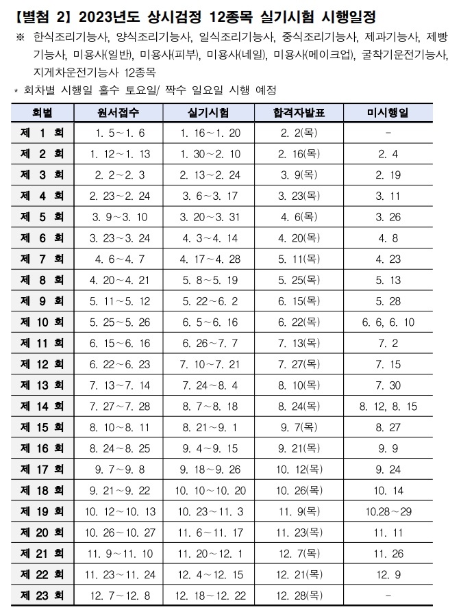 ◆ 2023년 미용사 (일반) 시험일정