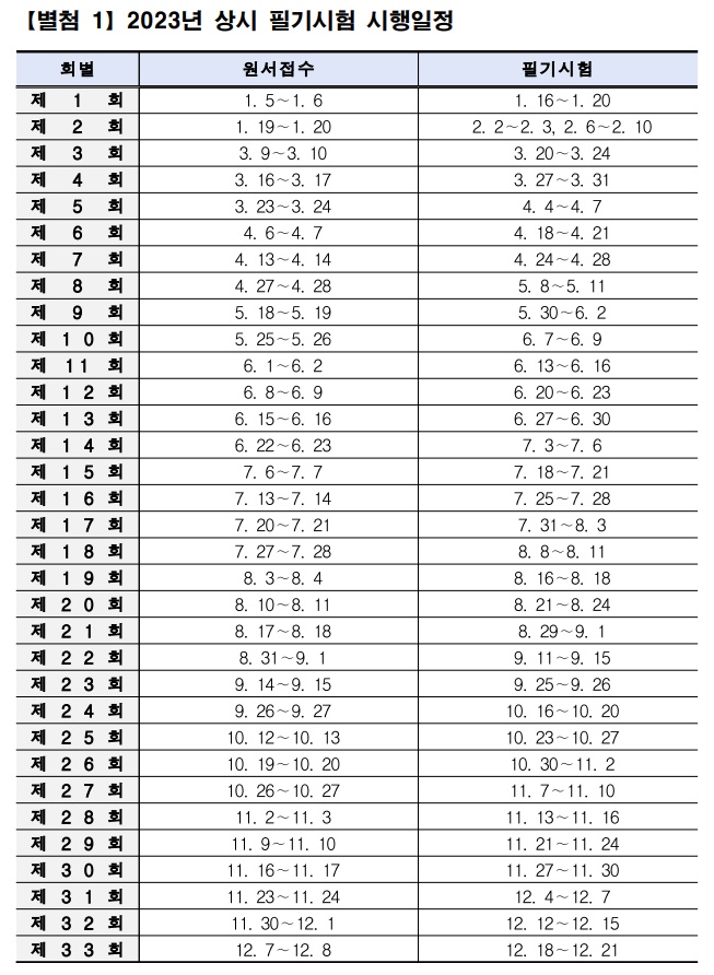 | 2023년 공무원 시험 일정 및 채용인원 (0) | 2023.01.12 |