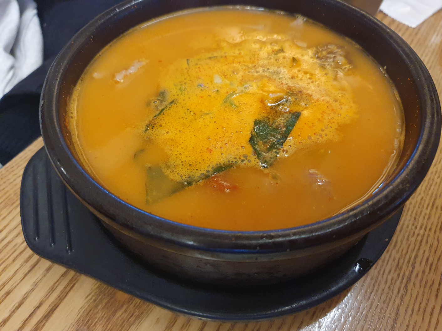 매운맛과 곱창을 좋아하는 친구가 주문한 메뉴 얼큰곱창순댓국 입니다. 곱창의 쫄깃한 식감과 매콤한 국물맛이 시원하고 칼칼한 맛이 좋습니다. 매운 것을 좋아하시는 분께 추천합니다.