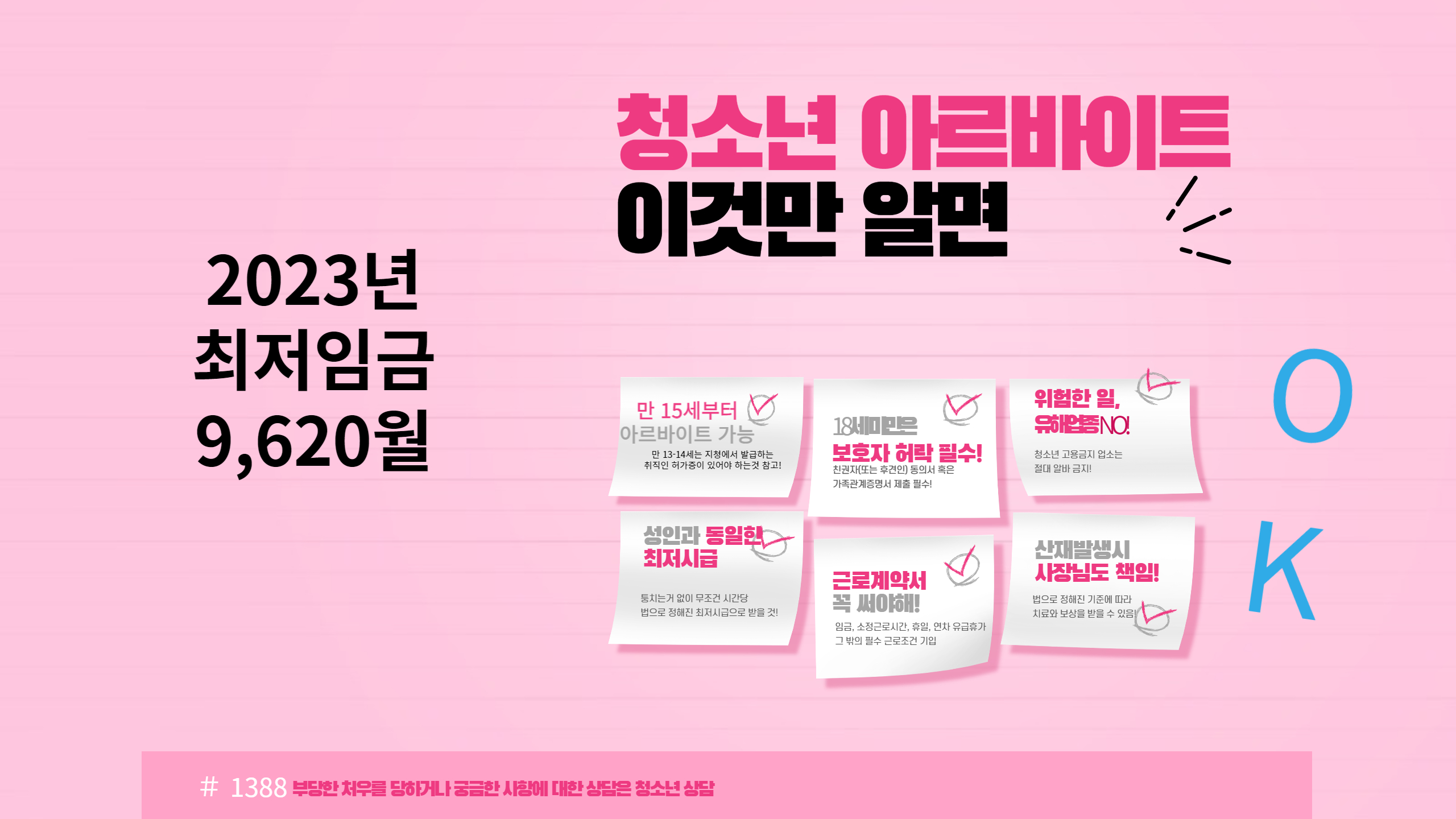 ◆ 요즘 젊은 청소년들이 아르바이트를 많이 하고 있는데요. 위 내용들을 꼭 기억하셔서 불이익을 당하지 않도록 하세요.